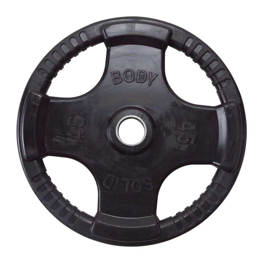 Body-Solid Rubber Grip Olympic Plates übertreffen Konkurrenzprodukte in Qualität, Präzision, Zuverlässigkeit und Preis. Das Vier-Griff-Design sorgt für sicherere und einfachere Ausführung. Body-Solid Rubber Grip Olympic Plates sind mit strapazierfähigem, starkem Gummi beschichtet, das Abrieb oder Schäden an Geräten, Wänden oder Böden verhindert. Diese Scheiben verfügen über eine integrierte Metallhülse, die einen reibungslosen und sicheren Sitz an jeder olympischen Stange gewährleistet.