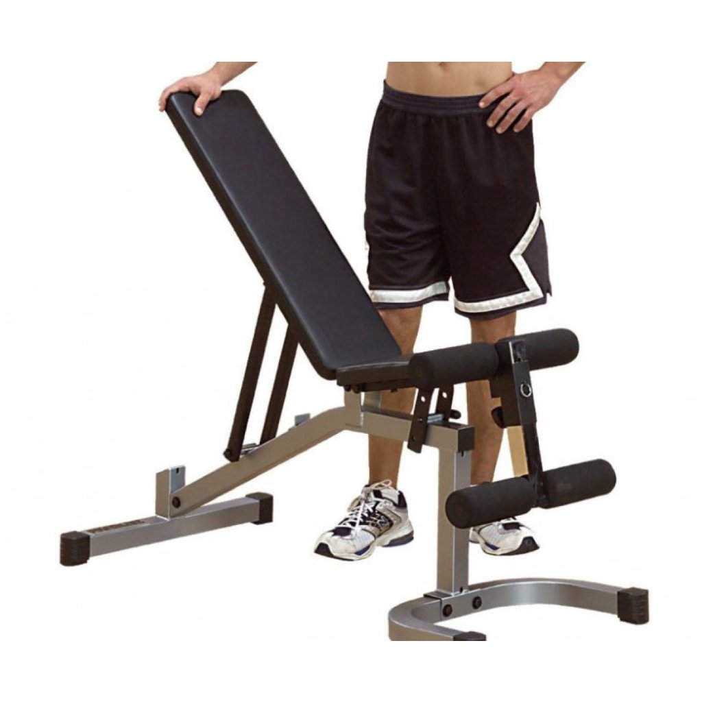 Verstellbare Trainingsbank Body Solid PowerLine PFID 130W, Gerade, Schräg für Bankdrücken und Bauchmuskeltraining. Schneller und sicherer Positionswechsel, hervorragende Stabilität und Kraft, Tragkraft bis 250kg. Feste Kniebefestigung – für Bauchmuskelübungen und Schrägbankdrücken kopfüber.
