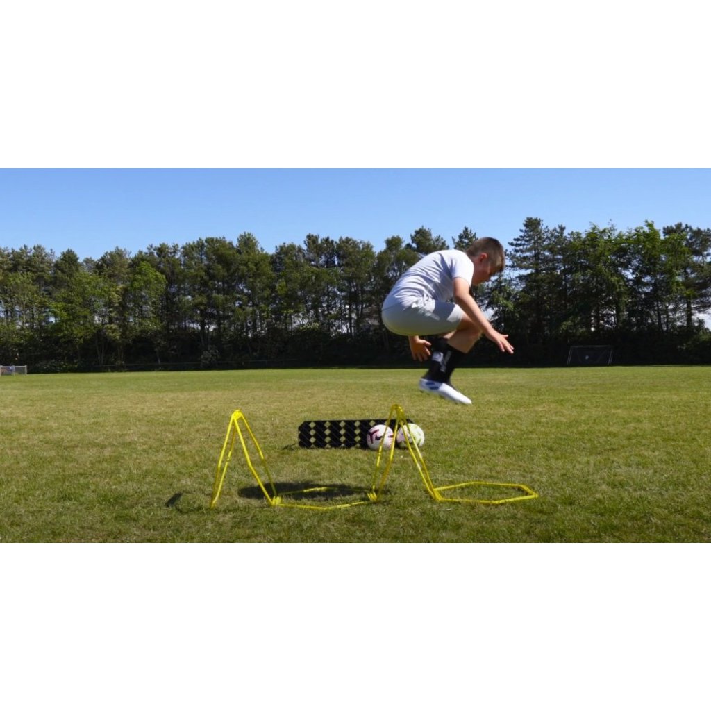 SKLZ Speed Web ist ein Trainingsgerät zur Verbesserung von Beinarbeit, Beweglichkeit und Schnelligkeit. Das SKLZ Speed Web besteht aus sechs verstellbaren, prismenförmigen Kreisen. Diese lassen sich mit Clips ganz einfach zu verschiedenen Mustern oder Hindernissen je nach Trainingsbedarf zusammenstellen. Dank der robusten Konstruktion ist das SKLZ Speed Web für den Einsatz auf den meisten Oberflächen geeignet. Es ist kompakt und leicht zu tragen.